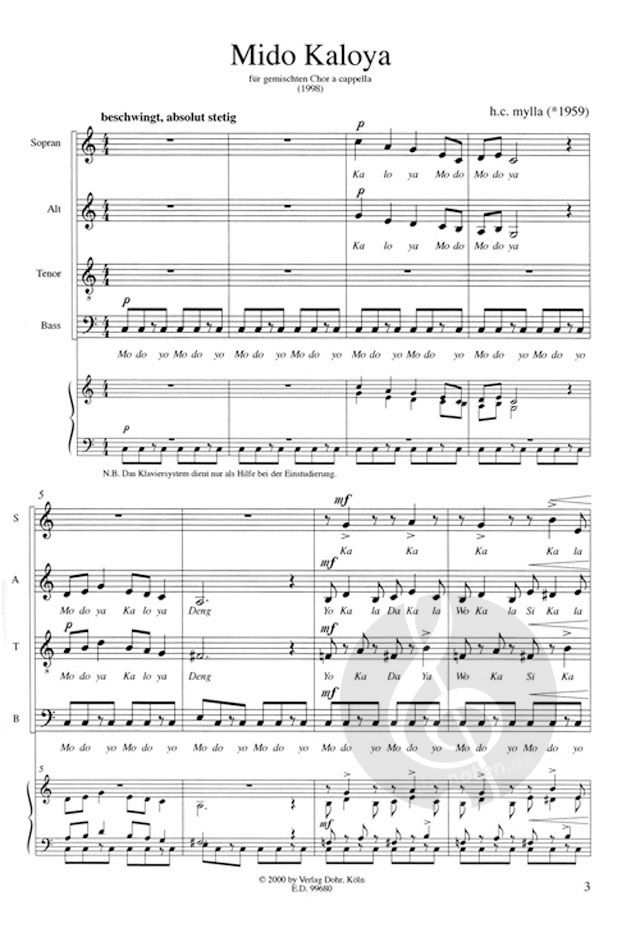 Gemischter Chor (3-st.); Chorpartitur, Partitur. Format: 8 S. - 21 x 15 cm.