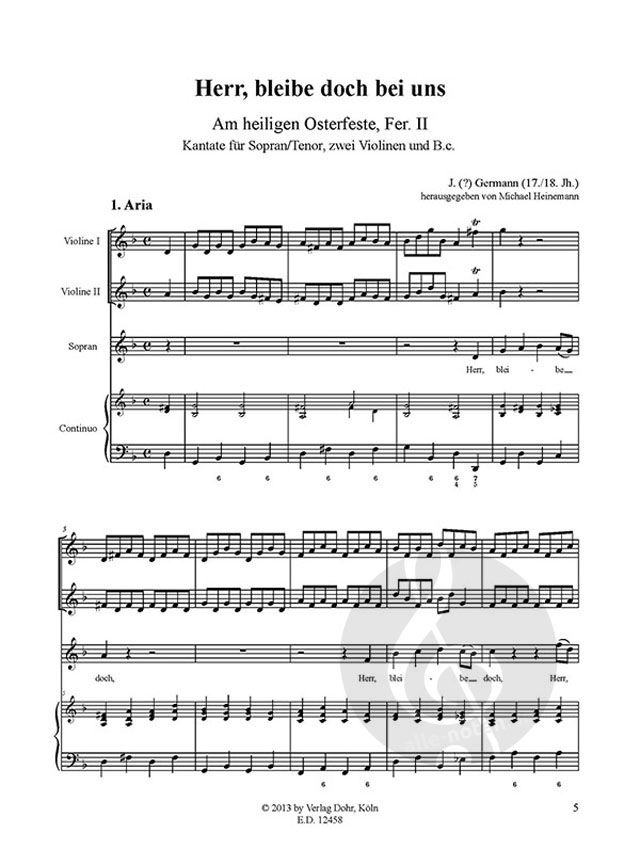 - Gesang (hoch), Gemischter Chor (SATB), 2 Violinen, Viola und Basso continuo