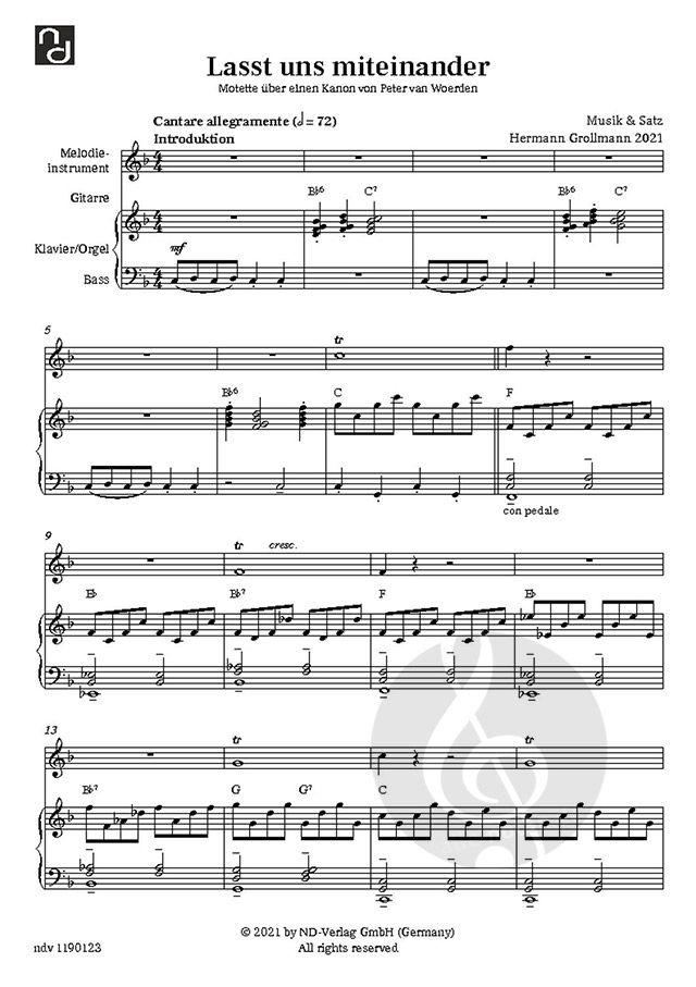 Die Combo-Ausgabe wurde passend zum Chor-Satz 'Lasst uns miteinander (NDV 1190123)' eingerichtet und kann mit vielfältigen Besetzungen kombiniert werden. Möglich ist der Einsatz nur von Klavier/Orgel...