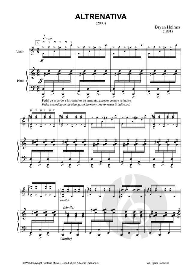 Claroscuros is a work for courageous violinists. Campoverde's music is full of details, as is apparent in his precise and accurate writing. This solo is full of contrasts, as the title suggests.