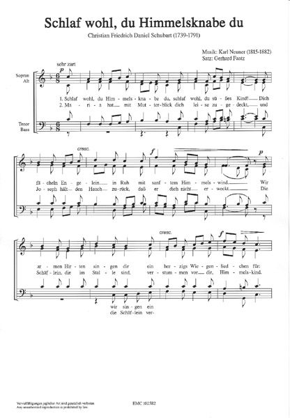 Besetzung: SATB Satz; Melodie: Karl Neuner (1815-1882); Text: Christian Friedrich Daniel Schubart (1739-1791)