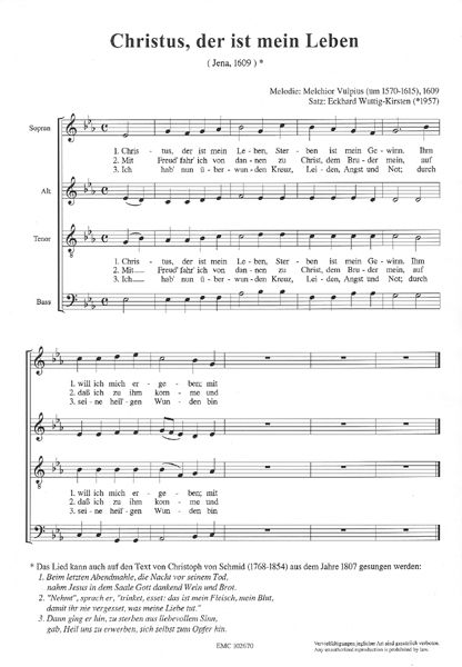 Besetzung: SATB Satz; Melodie: Melchior Vulpius (um 1570-1615), (1609); Text: (Jena, (1609)) Christoph von Schmid (1768-1854), (1607)