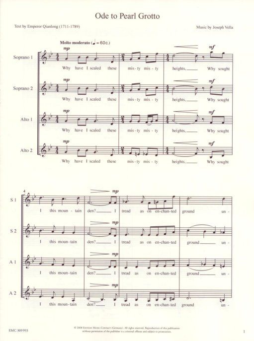 Besetzung: SATB geschrieben anlässlich des 2. Internationalen Kinder- und Jugendchorfestivals Giessen 1997