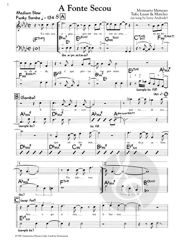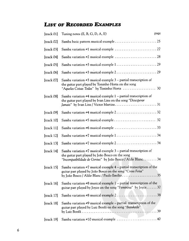 Alle charakteristischen Begleit-Patterns mit verschiedenen Variationen in den Stilen Samba, Bossa Nova, Choro, Frevo und Baiao, sehr gut aufgebaut, 140 S., mit Solo-Stücken und CD.