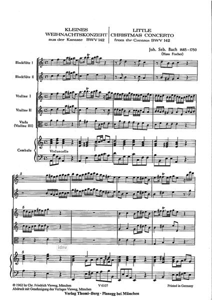 Streichorchester (mit Violine 3), Continuo (Trompeten, Pauken ad lib.) Ausgabe: Partitur (Orgel, Cembalo)