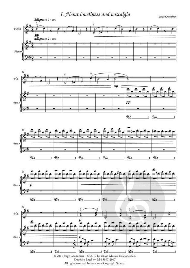 Dies ist die erste Sonate für Violine und Klavier von Jorge Grundman, die als Hommage an den kanadischen Komponisten Marjan Mozetich geschrieben wurde, über dessen Musik Poesie zu fließen scheint. Die...