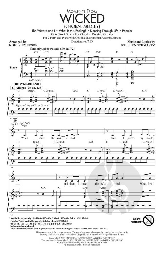 Sanft beginnend mit dem zarten, sofort wiedererkennbaren Vier-Ton-Motiv von "For Good", schwebt dieses schlanke und muskulöse Chormedley durch sieben sensationelle Songs in nur wenigen Minuten! Diese...