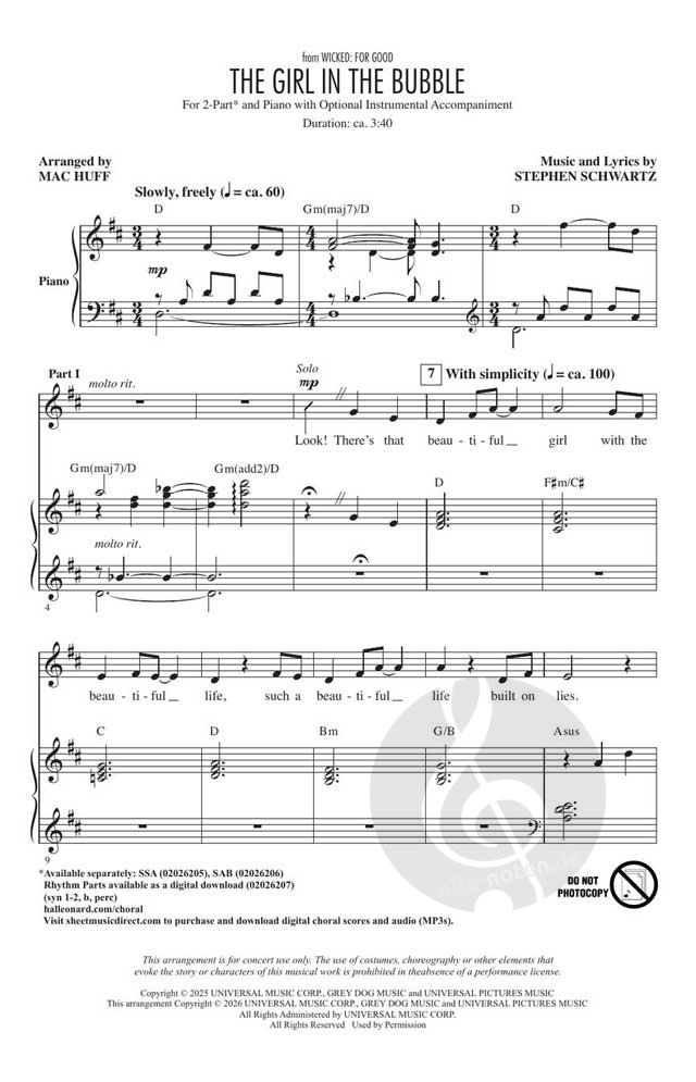 Aus "Wicked: For Good" umrahmt dieser "Exklusiv-zum-Film"-Song den Wendepunkt in der Geschichte von Glinda. Dieser ergreifende Moment der Selbstreflexion lässt sich in diesem Arrangement für Diskantst...