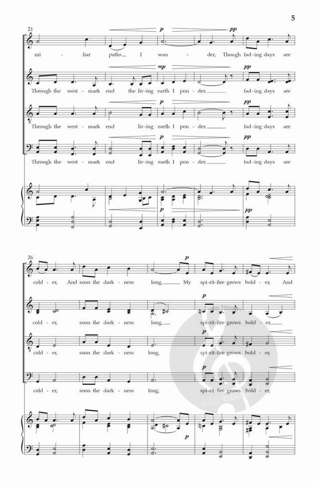 Ursprünglich sollte mit dieser schön gesetzten Melodie für gemischten Chor (SSAATTBB) das berühmte Gedicht Stopping By Woods von Robert Frost vertont werden. Nachdem dies jedoch aus rechtlichen Gründe...