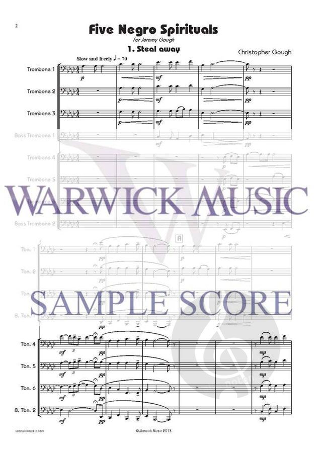 Five Spirituals von Christopher Gough ist eine Suite traditioneller amerikanischer Spirituals in einer Bearbeitung für Posaunenoktett. Mit zwei getrennten Chören, jeder mit einer Bassposaune, eignet s...