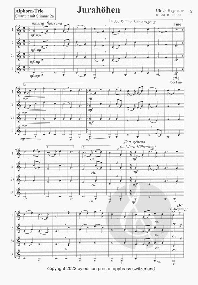 Zum Komponist Ulrich Hegnauer: Aufgewachsen im Kanton Aargau, wohnhaft im Kanton Bern. 4 Jahre Trompete an aargauischer Bezirksschule; danach Privatunterricht bei Umberto Induni (Radio-Sinfonieorchest...