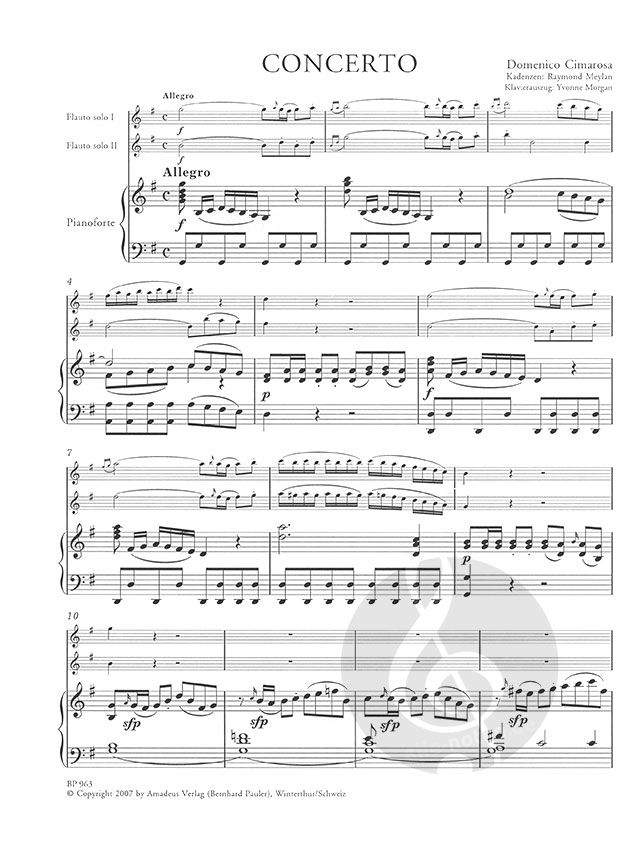 Das populäre Konzert für 2 Flöten des Schöpfers der Oper 'Die heimliche Ehe' liegt hier komplett in Partitur, Klavierauszug mit Kadenzen und Orchestermaterial käuflich vor.