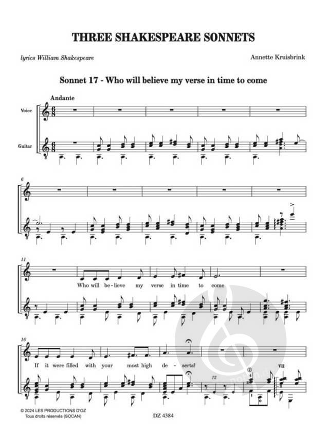William Shakespeare (1564-1616) gilt als der größte Schriftsteller, den England je hervorgebracht hat. Er schrieb 154 Sonette. Für ihre "Three Shakespeare Sonnets" wählte Annette Kruisbrink die Nummer...