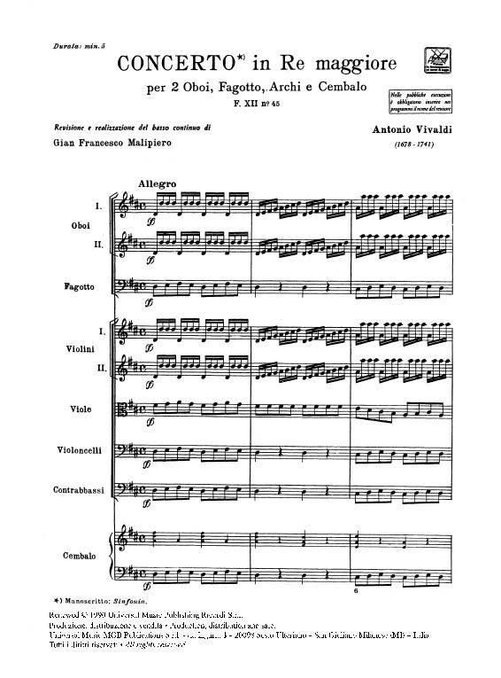 - 2 Oboen, Fagott, Streicher und Cembalo