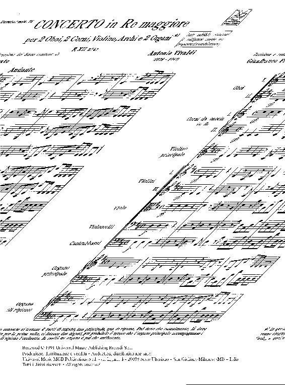 - 2 Oboen, 2 Hörner, Violine, Streicher und 2 Orgeln