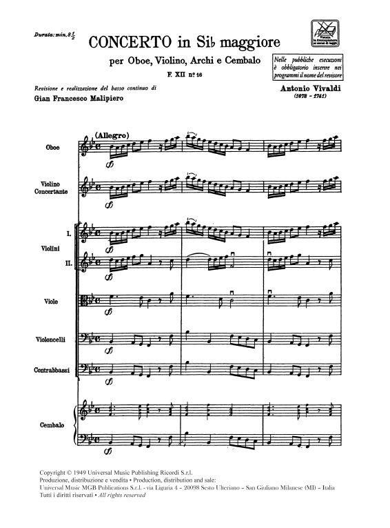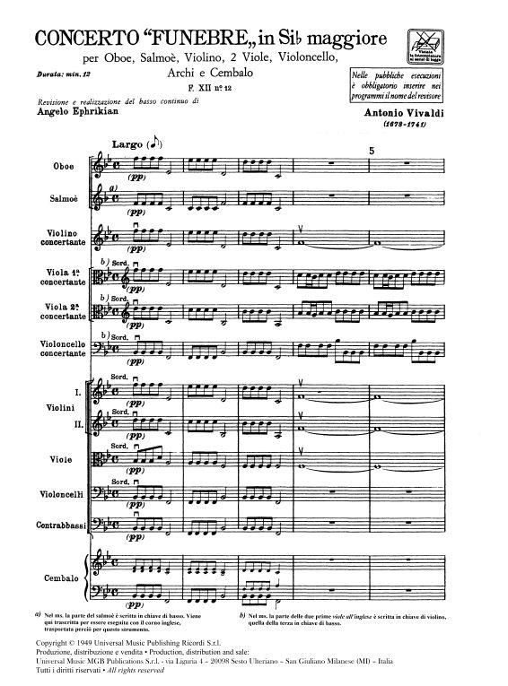 - Oboe, Englischhorn, Violine, 2 Violen, Cello, Streicher und Cembalo