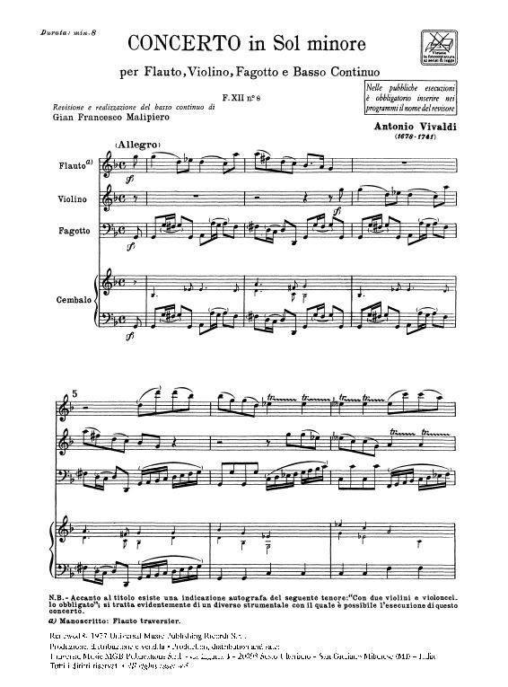 - Querflöte, Oboe, Violine, Fagott und Basso Continuo
