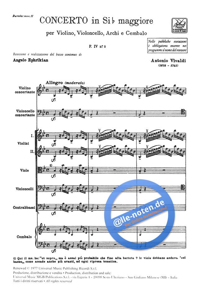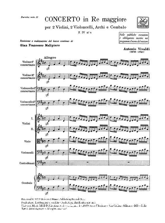 - 2 Violinen, 2 Celli, Streicher und Cembalo
