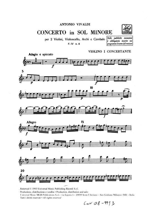 Casa Ricordi Milano in partnership with Fondazione Giorgio Cini, Venezia (Istituto Antonio Vivaldi). Critical edition by Alessandro Borin. The six Concerts op. VI for violin, strings and continuo by A...