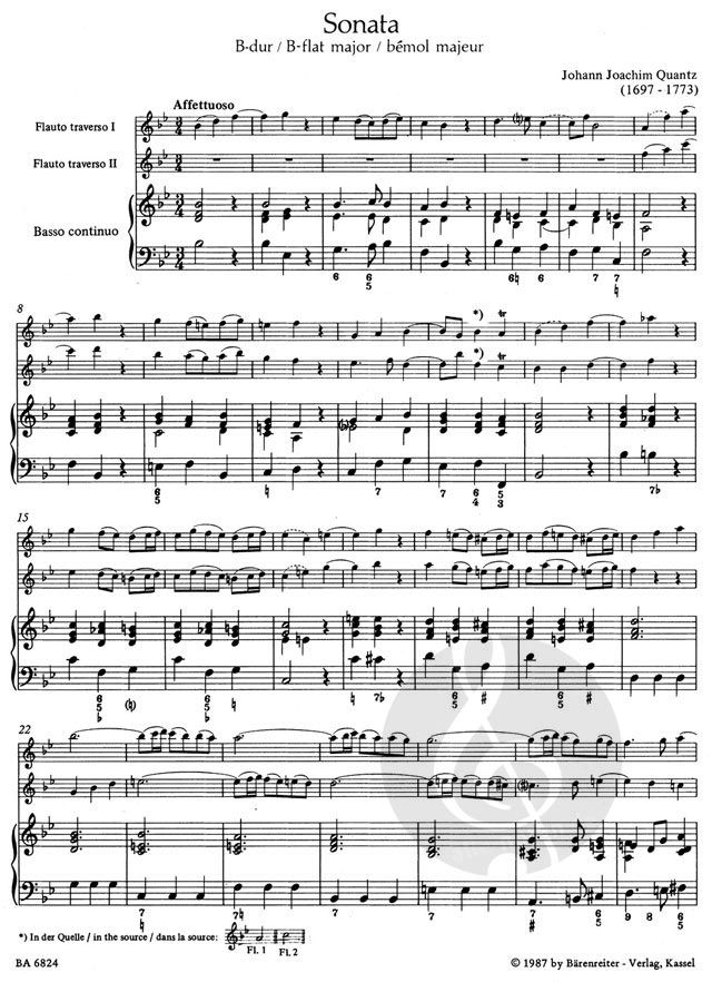 Erstausgabe - Flöte, Basso continuo - Spielpartitur; Einzelstimme