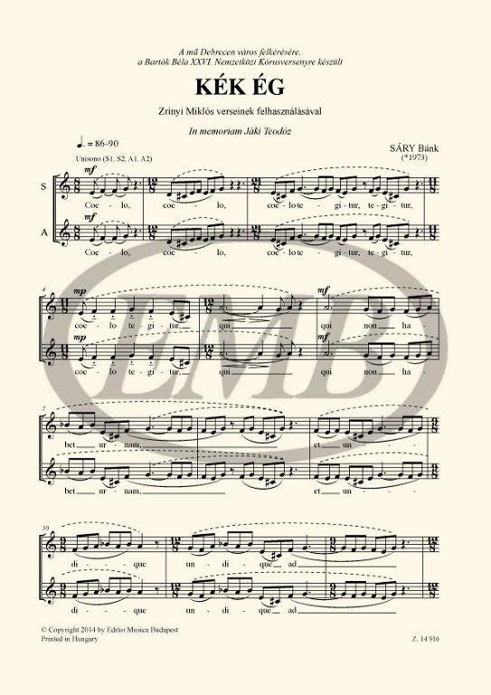 Bánk Sáry composed his choral work Blue Sky for female voices commissioned by the town of Debrecen for the Béla Bartók 26th International Choir Competition in 2014. The composer says about his work: '...