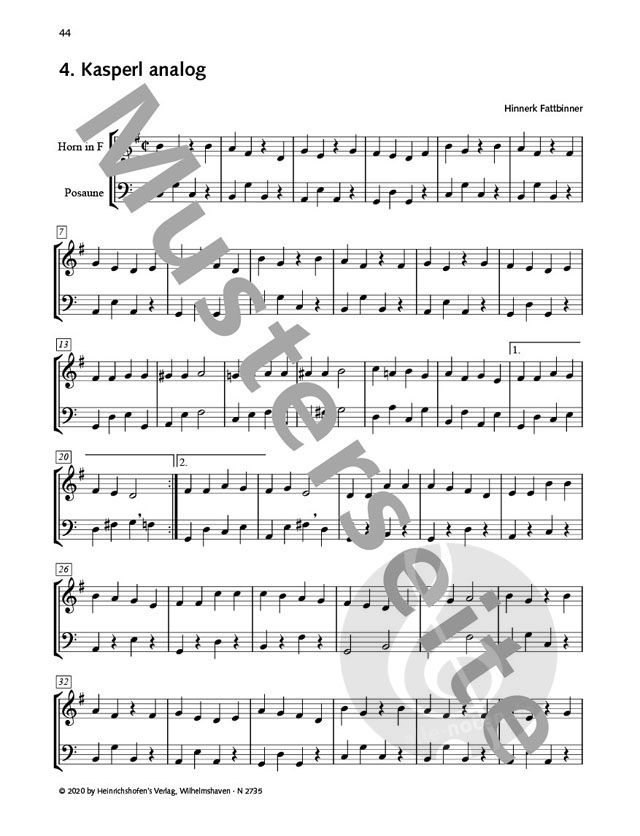Ein Duo aus Horn (F) und Posaune ist nicht selten, aber selten findet sich gute Spielliteratur für diese Besetzung. Hinnerk Fattbinner hat farbenfrohe Musik geschaffen, die in fünf Suiten in dieser Au...