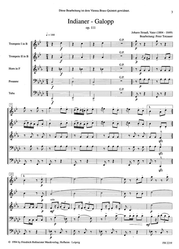 - Blechbläserquintett (2 Trompeten in C, Horn, Posaune und Tuba)