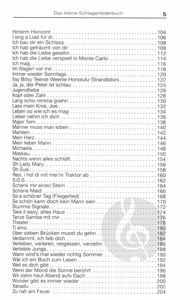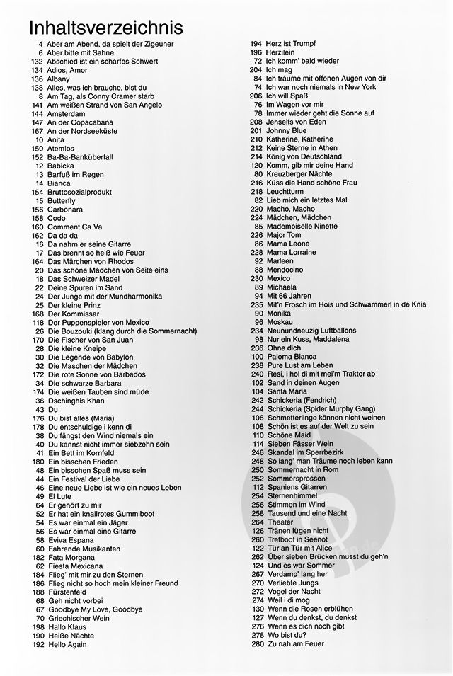 140 der legendären deutschen Schlager der 70er und 80er Jahre in einem Buch, unter anderem mit den Hits 'Aber bitte mit Sahne', 'Am Tag als Conny Kramer starb', 'Der Junge mit der Mundharmonika', '100...