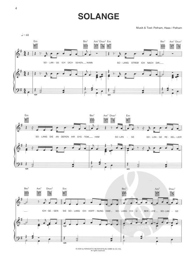 Fifteen of the greatest hits from the popular German singer/songwriter. All arranged for Piano Vocal and Guitar. German language edition with lyrics in English.