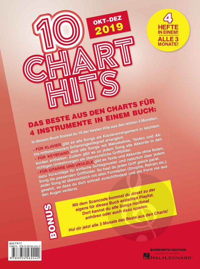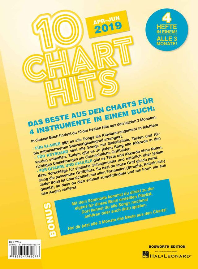 Jetzt alle 3 Monate das Beste aus den Charts! Die neue Reihe '10 Charthits' enthält 10 der besten Hits der letzten 3 Monate für 4 Instrumente in einem Buch: Für Klavier gibt es alle Songs als Klaviera...