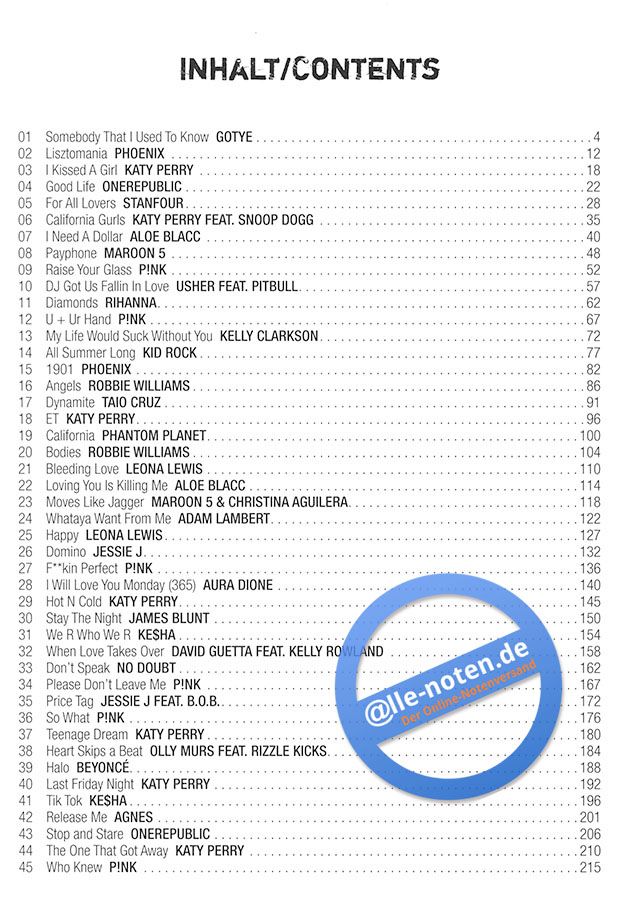 Deine Top Tracks' enthält 12 der besten Hits der letzten Monate. Alle Songs wurden in leichten bis mittelschweren Arrangements für Piano-Vocal-Guitar inkl. Text und Griffbildern arrangiert.