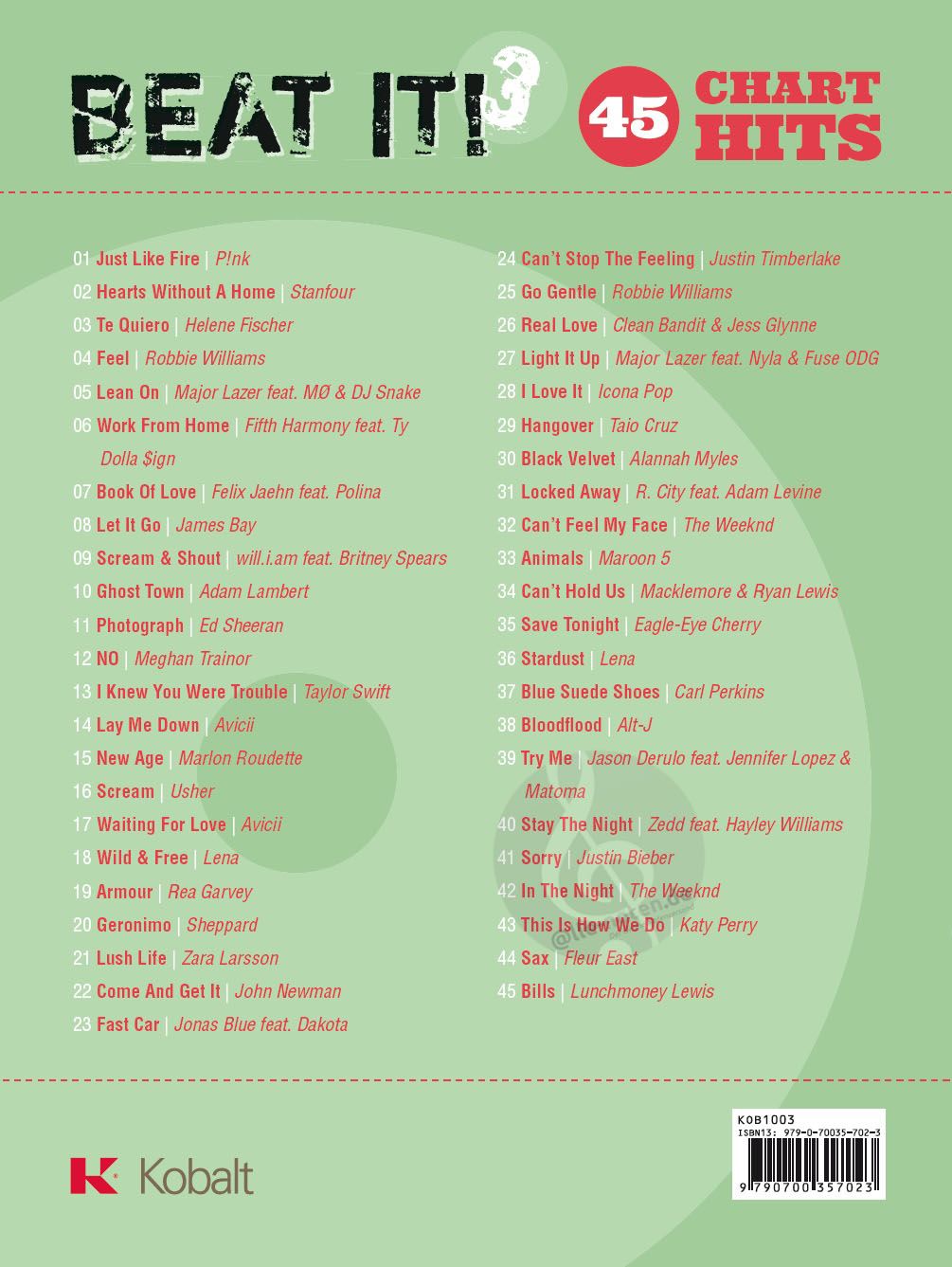 Beat it! Band 4 knüpft an die erfolgreichen ersten Teile dieser Reihe an und beinhaltet 45 international bekannte Charthits von Szenegrößen wie Adele, Ed Sheeran, Katy Perry, Rag'n'Bone Man, Olly Murs...
