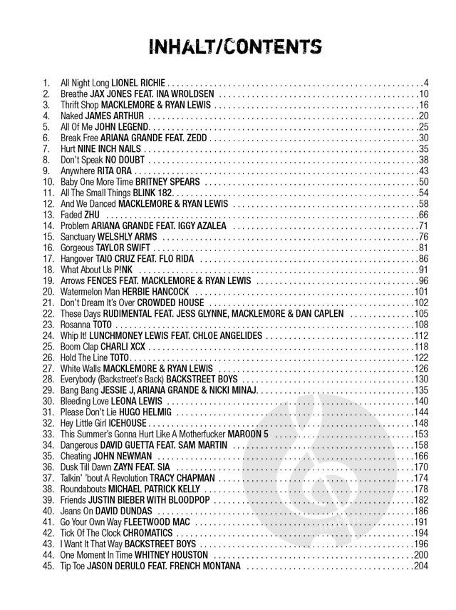 20 topaktuelle und zeitlose Hits aus Pop & Rock von Interpreten wie Britney Spears, Pink, Katy Perry, Leona Lewis, Christina Aquilera, Lena, Ich & Ich und noch vielen anderen. Die Songs sind notiert f...