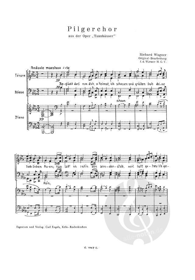 Für Männerchor und Klavier oder Orchester (mit Wagners Schlussfassung für den Wiener Männergesangverein).