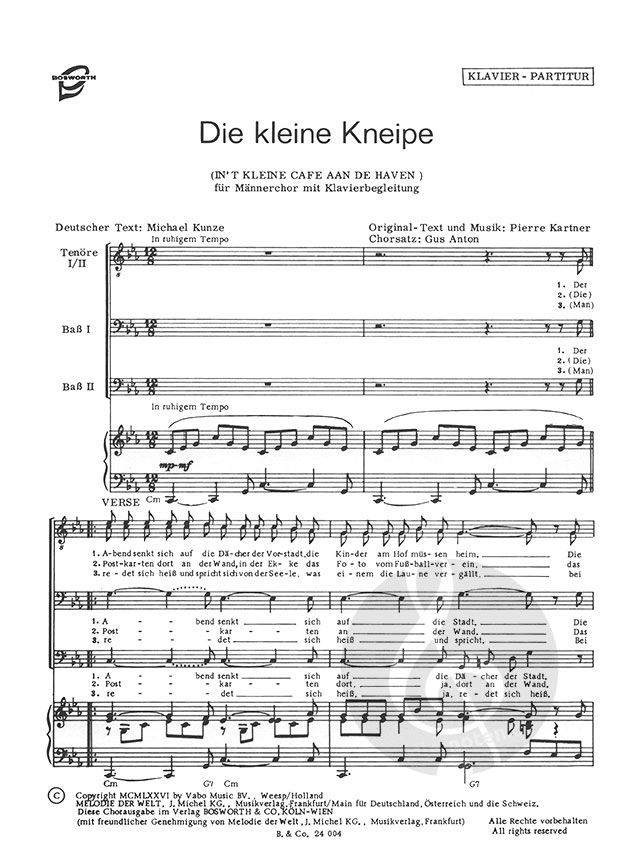 - Männerchor (TTBB) und Klavier
