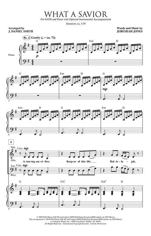 He is beginning and the end, forgiver of our sin, and by His mercy He has saved us. He is stronger than any other - hallelujah, what a Savior. J. Daniel Smith's arrangement feels comfortable and will...