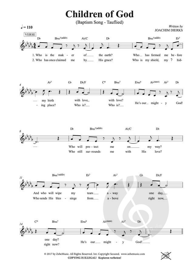 Dieses Tauflied ist eine Art "Liebesbrief Gottes an seine Kinder": Gott hat uns geschaffen, schon vor unserer Geburt hat er uns erwählt. Er ist unser Wegbegleiter und Beschützer, ist unser Schild und...