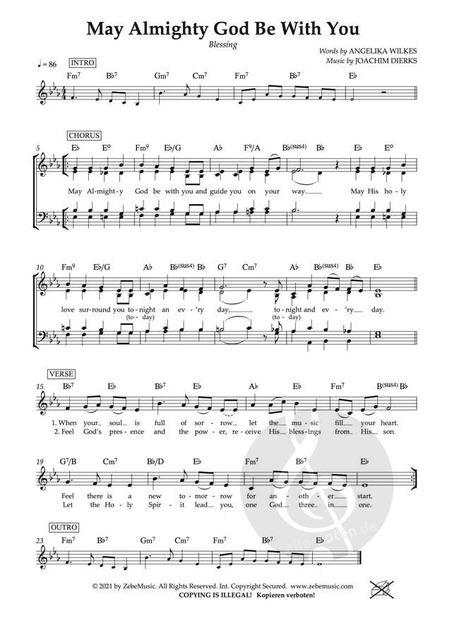 Dieses Segenslied ist ein Auszugslied am Ende eines Gospelkonzerts oder eines Gottesdienstes. Es sind die Wünsche, die der Chor seinen Zuhörern mit auf den Weg gibt. "Möge der allmächtige Gott mit...