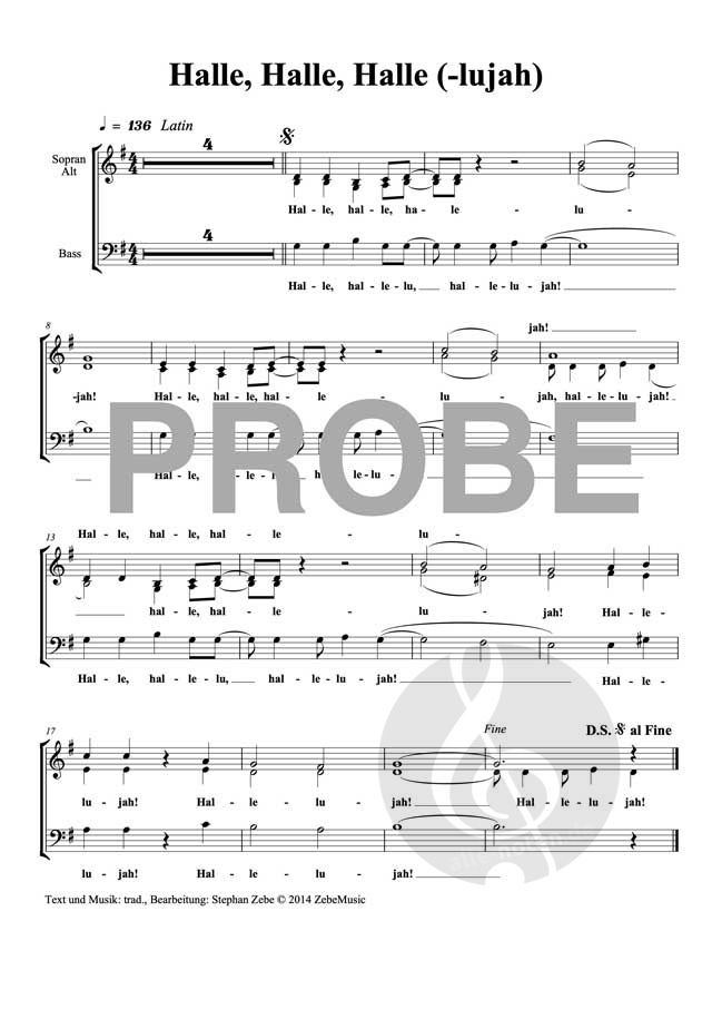 Populäres karibisches Hallelujah in einer Bearbeitung für gemischten Chor (SAB) von Stephan Zebe. Der Download enthält neben der Chorstimme eine ausnotierte Klavierbegleitung und Akkordsymbole.