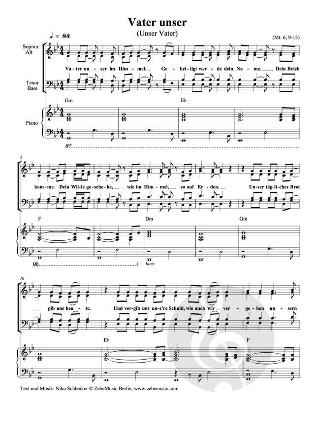 Das Vaterunser in einer groovigen Komposition für gemischten Chor (SATB) und Klavier. Niko Schlenker schrieb es für die Sammlung "Glory to God!" und es eignet sich sowohl für den Gottesdienst als auch...