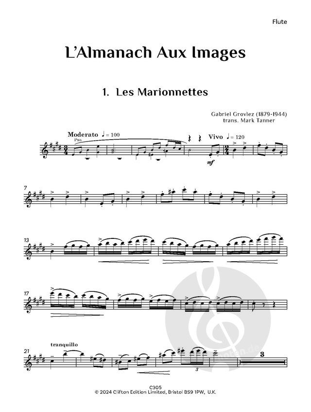 L'Almanach Aux Images: Diese acht wunderschönen Stücke wurden ursprünglich 1911 für Klavier geschrieben und hier von Mark Tanner für Flöte und Klavier transkribiert. Die Musik ist von den Gedichten vo...