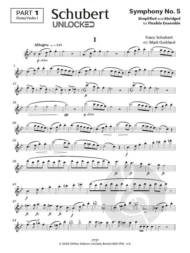 Schuberts 5. Symphonie, vereinfacht und gekürzt für ein flexibles Ensemble von Mark Goddard. Dieses Arrangement bewahrt die Essenz des großen Werkes, ist aber dennoch leicht zu spielen und prägnant. D...