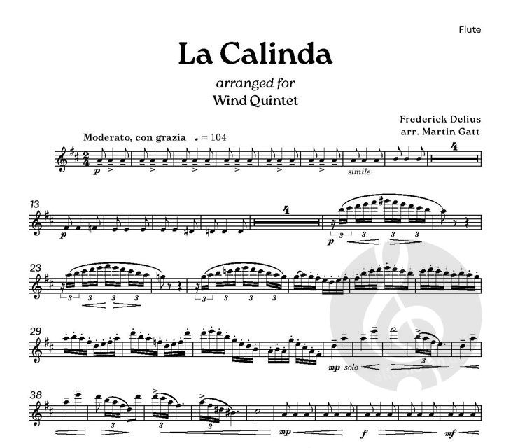 Diese berühmte Melodie stammt aus der Oper Koanga von Frederick Delius, seiner dritten Oper, die zwischen 1896 und 1897 entstand. Diese Bearbeitung für Bläserquintett (Flöte, Oboe, Klarinette in B, Ho...