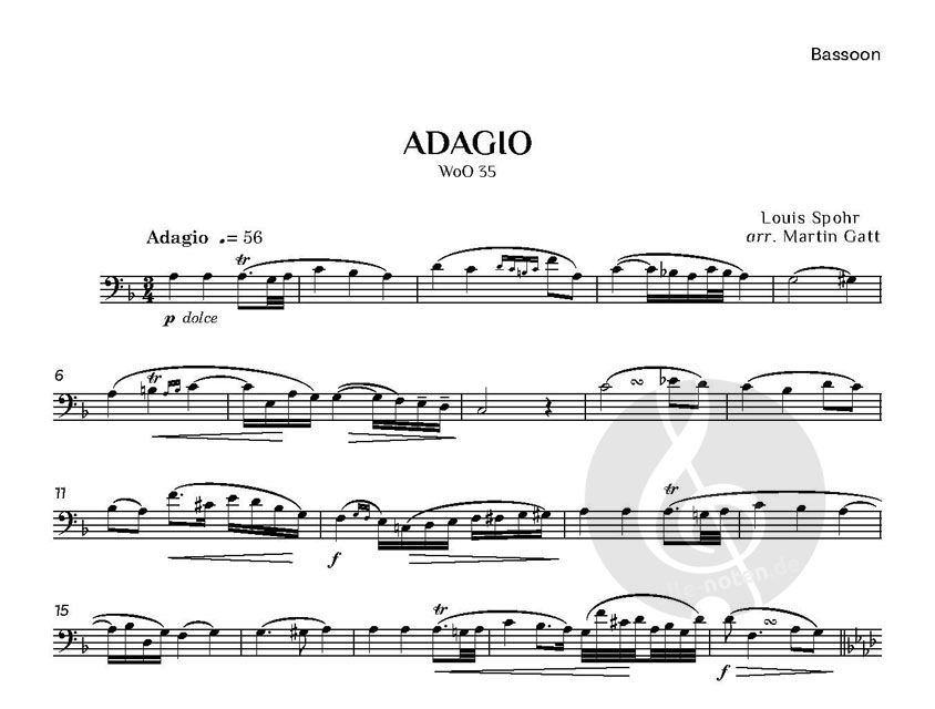 Der Komponist, Geiger und Pädagoge Louis Spohr (1784-1859) schrieb ein virtuoses Adagio für seine erste Frau, eine virtuose Harfenistin und Pianistin. Später arrangierte er es für Fagott und Klavier u...
