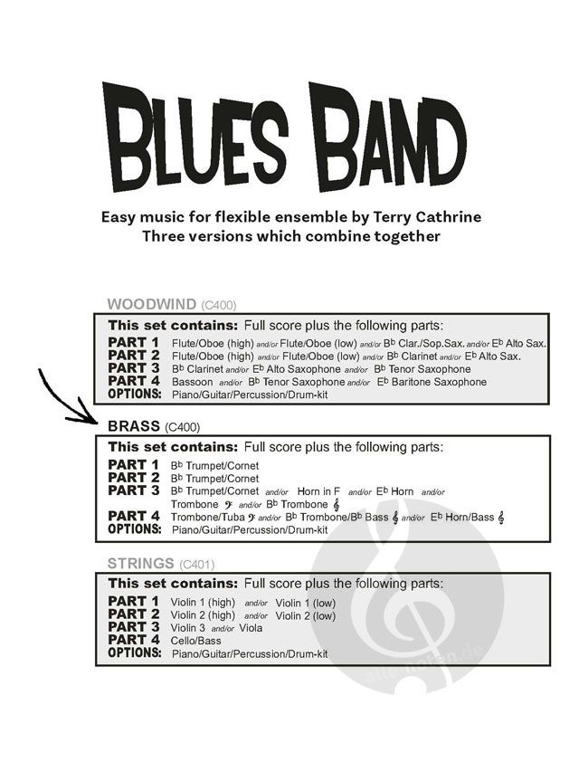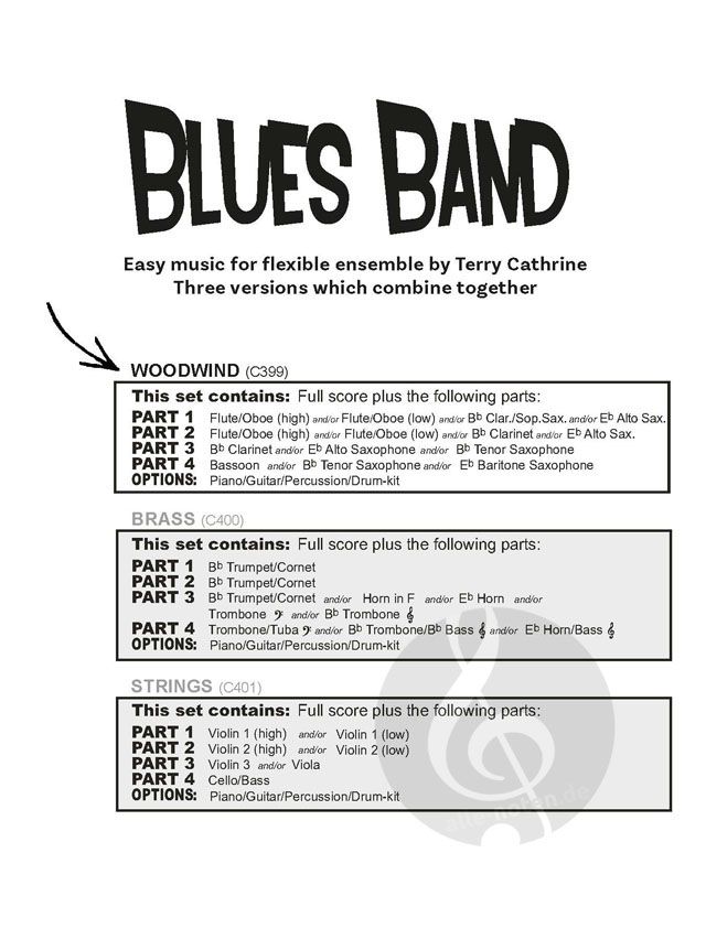 Blues Band enthält 3 einfache zwölftaktige Blues-Melodien - ideal für Anfänger - mit optionalen Schlagzeug-, Percussion-, Keyboard- und Gitarrenakkordsymbolen für flexibles Musizieren in der Gruppe, e...