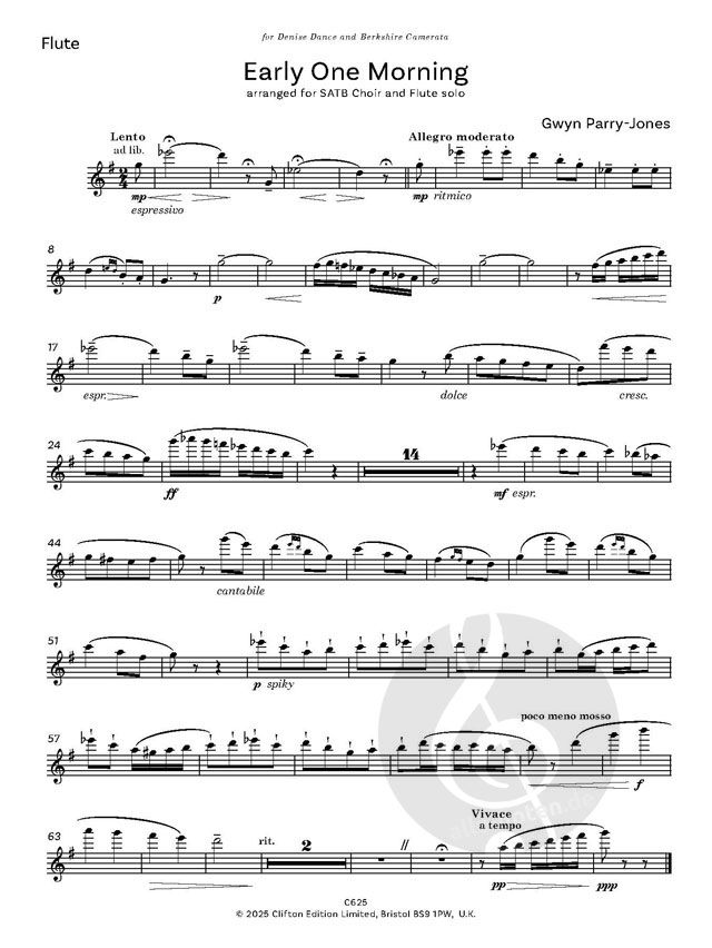 Der Preis gilt für eine Download-Lizenz von 30 Exemplaren. SATB mit Soloflöte. Die Solo-Flötenstimme ist als kostenloser Download erhältlich. Gwyn Parry-Jones hat das bekannte Volkslied "Early One Mor...