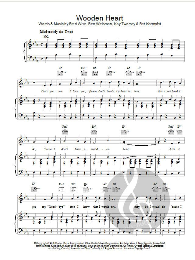 Klavier, Gesang & Gitarren-Akkorde (Melodie rechte Hand).