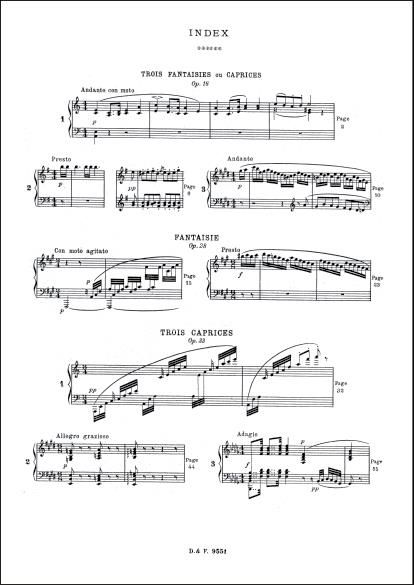 Includes 3 Fantaisies or Caprices, Op. 16 - Fantaisie, Op. 28, 3 Caprices, Op. 33.
