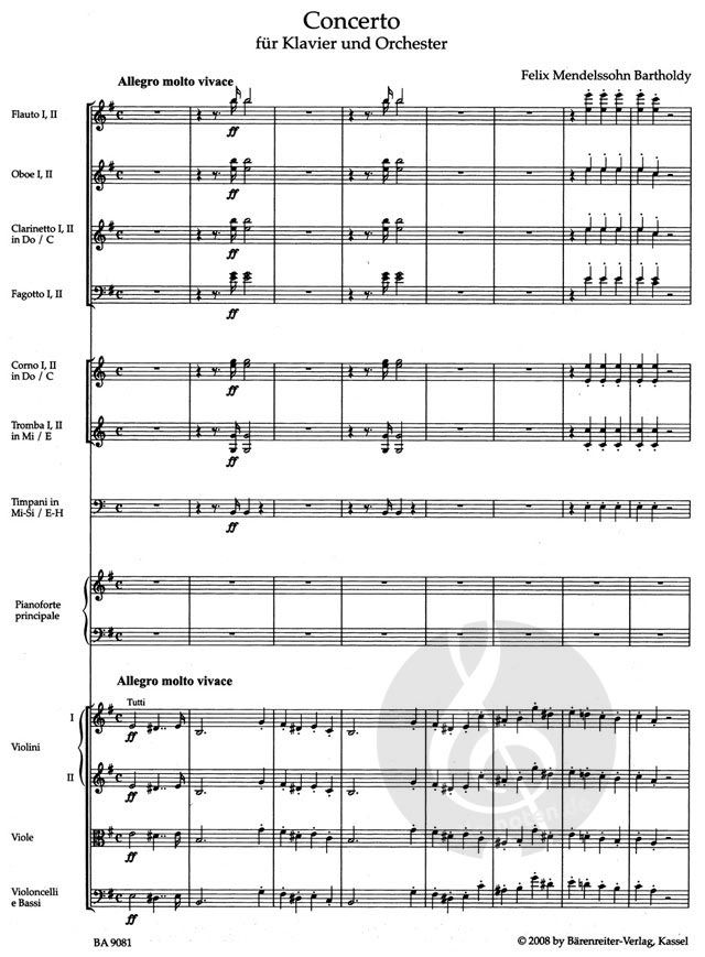 Erstdruck, hrsg. von Christoph Hellmundt, 1997. Mendelssohn schrieb das Konzert im Alter von 12 Jahren. Das Werk lässt klassische Vorbilder (Hummel, Dussek u. a.) durchscheinen und gelangt insbesonder...