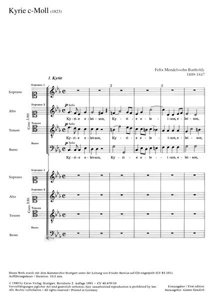 Wie andere geistliche Frühwerke Mendelssohns für Doppelchor vertont, zeigt auch das Kyrie von 1823 die Affinität zu Mozart.